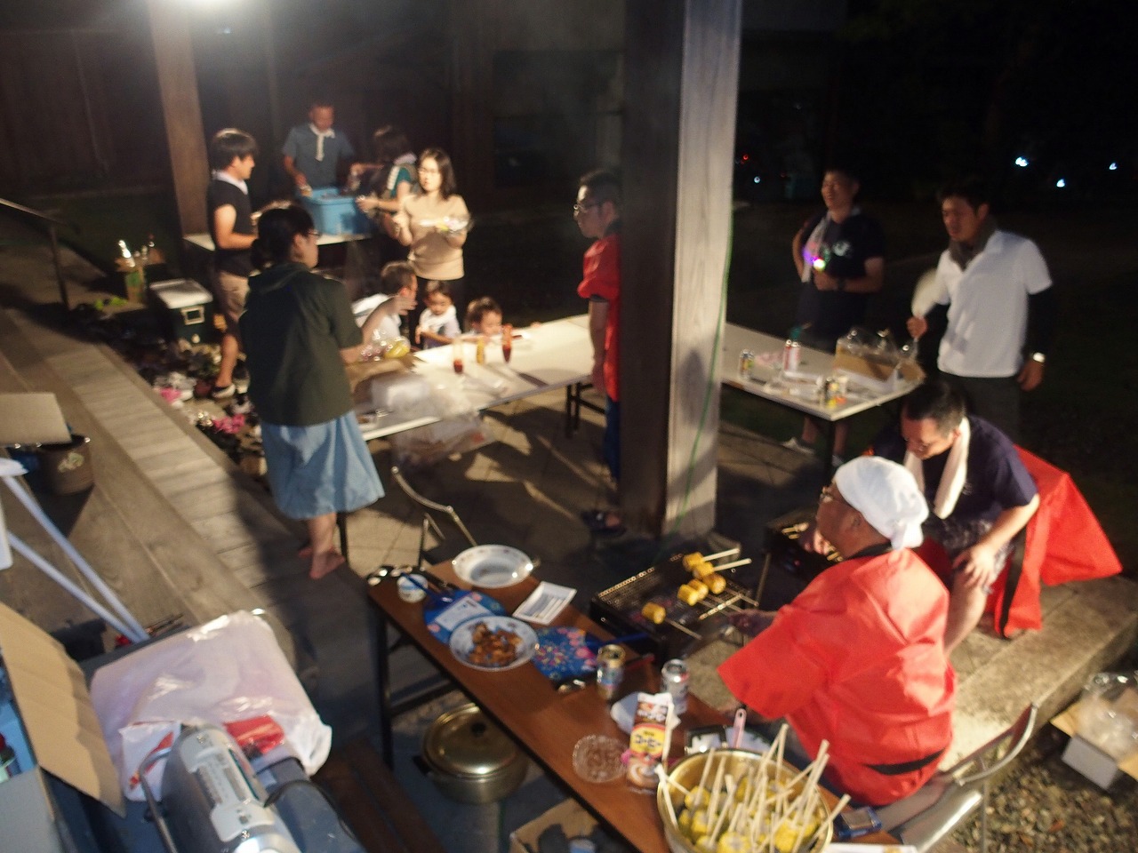 午後1時に若葉会役員が集合し、買い出しや会場の設営をしました。3時には婦人部役員が来院し焼きそばなどの準備をしていただきました。午後6時30分頃からはじめました。