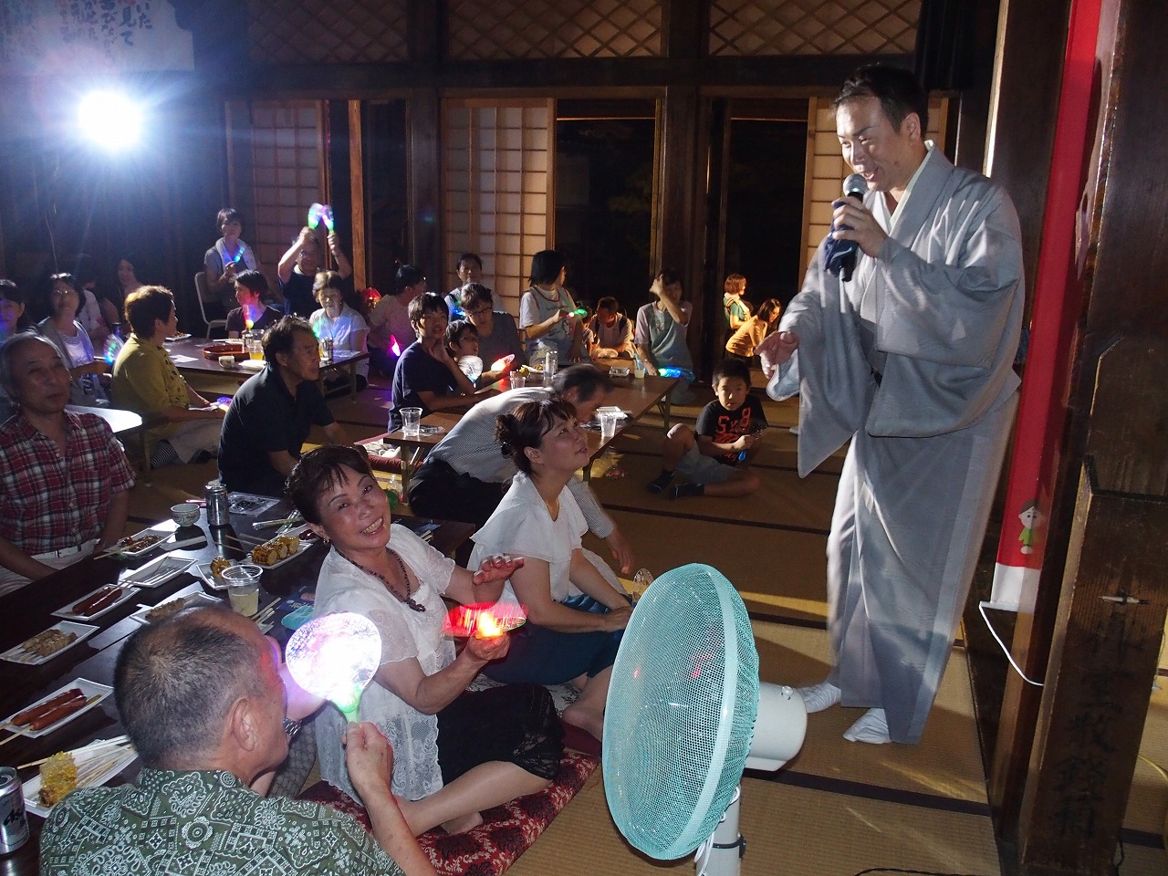 当日は、台風の影響で天候が悪く、会場を本堂内に移して行いました。