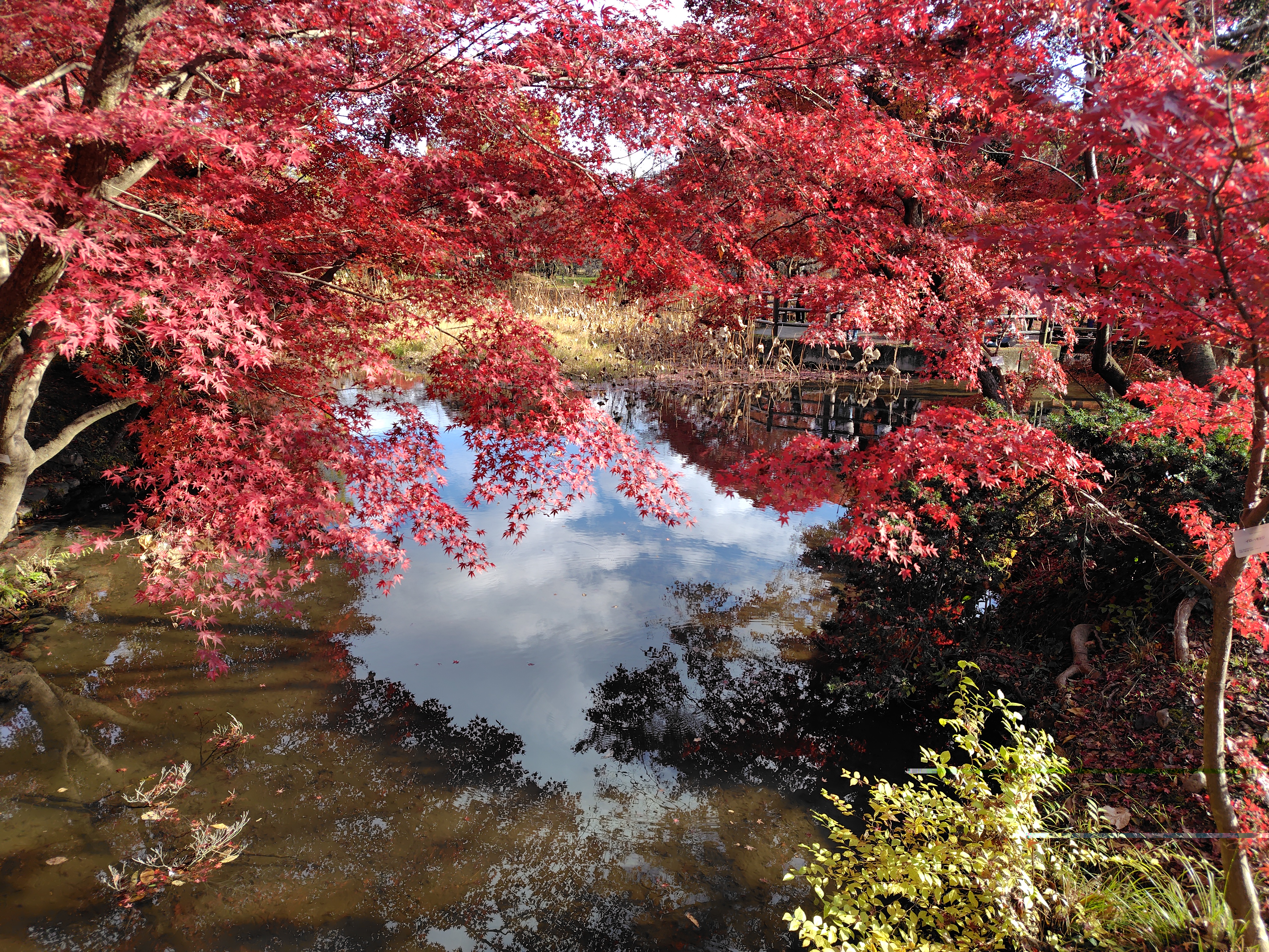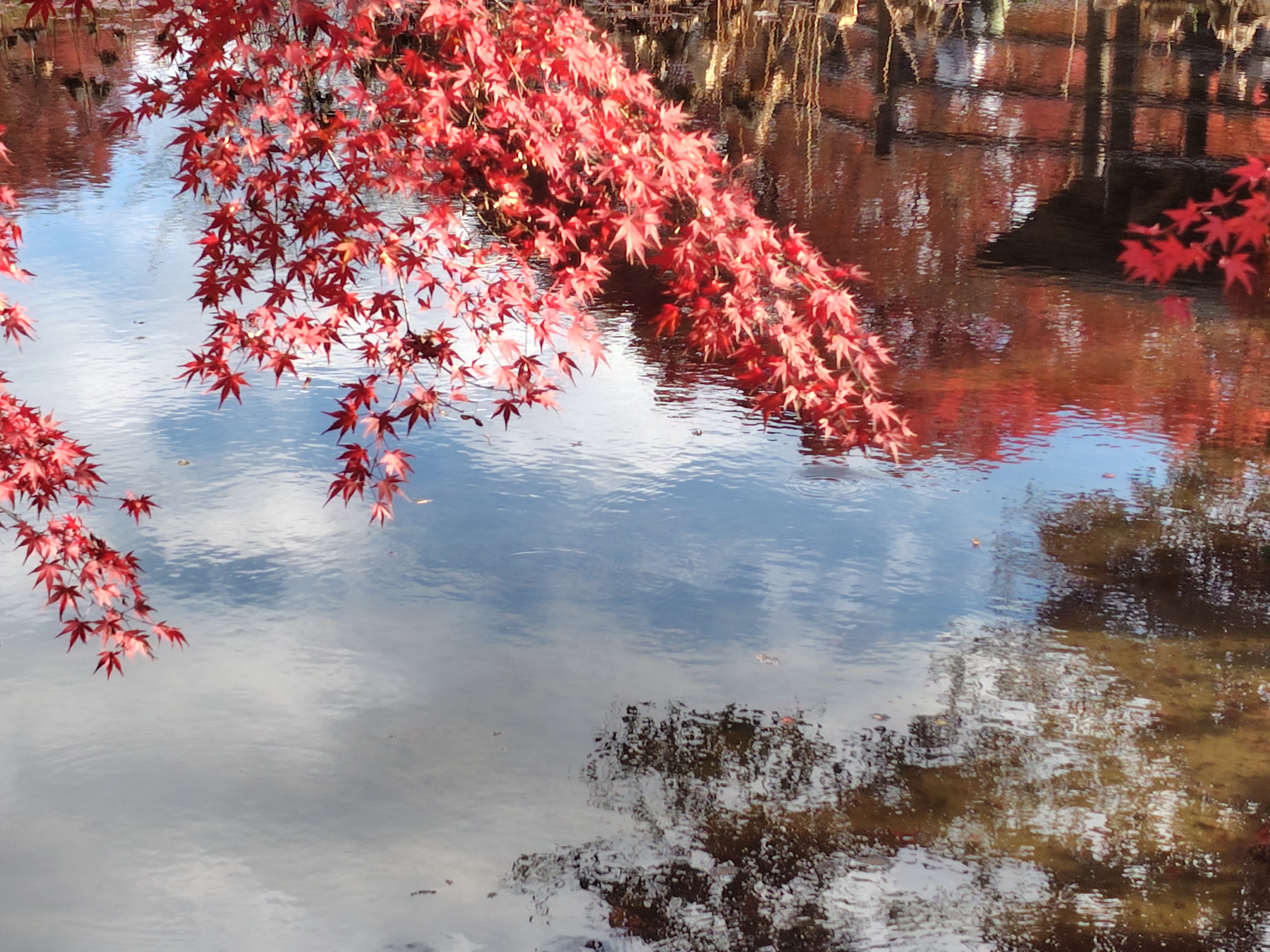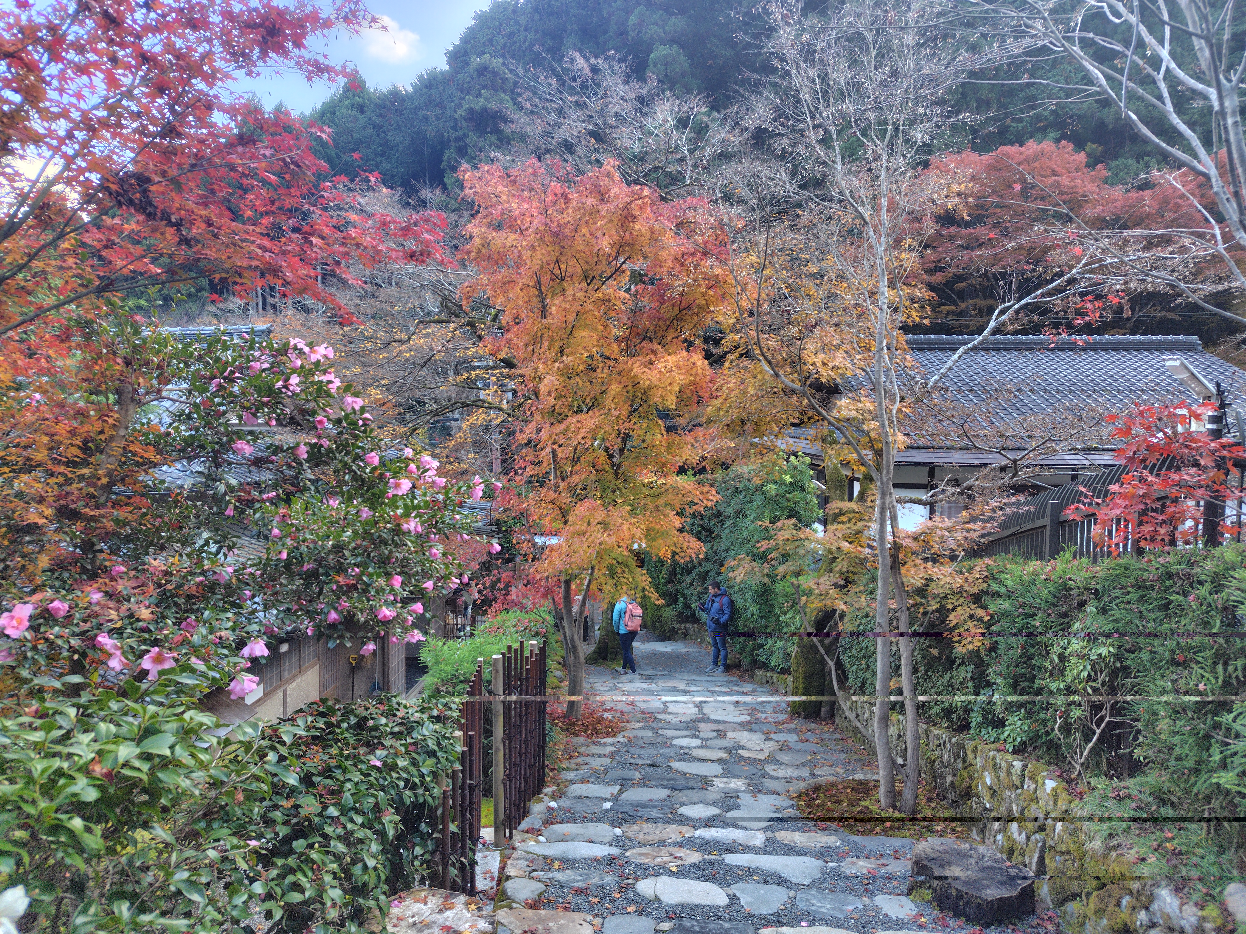 昼食後、京都府立植物園に行きました。紅葉が最盛期で、好天にも恵まれ素晴らしい眺めにしばし我を忘れていました。続いて八瀬大原の寂光院に寄りました。寂光院は天台宗の尼寺で、山号を玉泉寺といい、推古2(594)年に聖徳太子が父・用明天皇の菩提を弔うために建立されたと伝えられています。本堂には、国宝修理所の故小野寺久幸仏師によって、形・大きさともに元通りに復元された新たな地蔵菩薩立像が安置され、落慶式と同時に、魂入れの儀式として入仏式が厳修されました。鎌倉時代の制作当時そのままの美しい彩色でありました。
