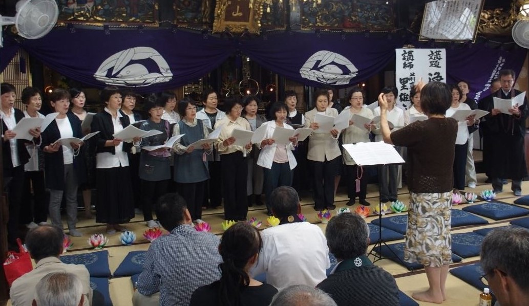 さて、去る6月10日に、24組の同朋大会が開催されました。組内から住職・寺族・門徒等120名を超える人が、浄教寺様に集いました。午後1時30分から、24組合唱団「山河サンガ」の佛教讃歌の演奏がありました。25名の混声合唱のハーモニーを楽しんでいただきました。2時から山田組婦人会長の司会の下で進められ、真宗宗歌斉唱・美濃部組長からの挨拶があり、組教導の私から大会の趣旨について下記の通り説明しました。